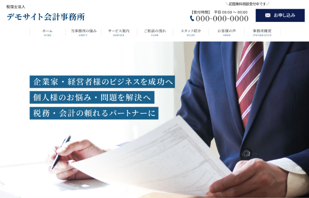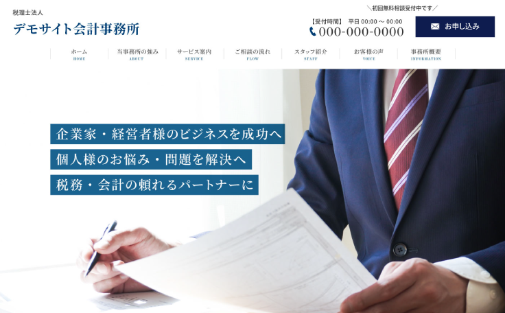 当ホームページは、士業に特化し信頼感・安心感を与えるハイクオリティなデザインのホームページです。