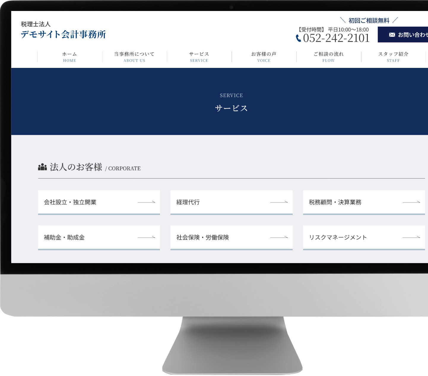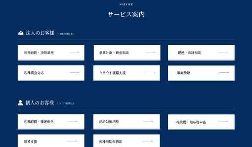ホームページにアクセスしたクライアントとなり得る人が知りたい情報を、見やすく分かりやすく探しやすい、士業に特化し、情報をきちんと整理したページ・コンテンツ構成になっています。